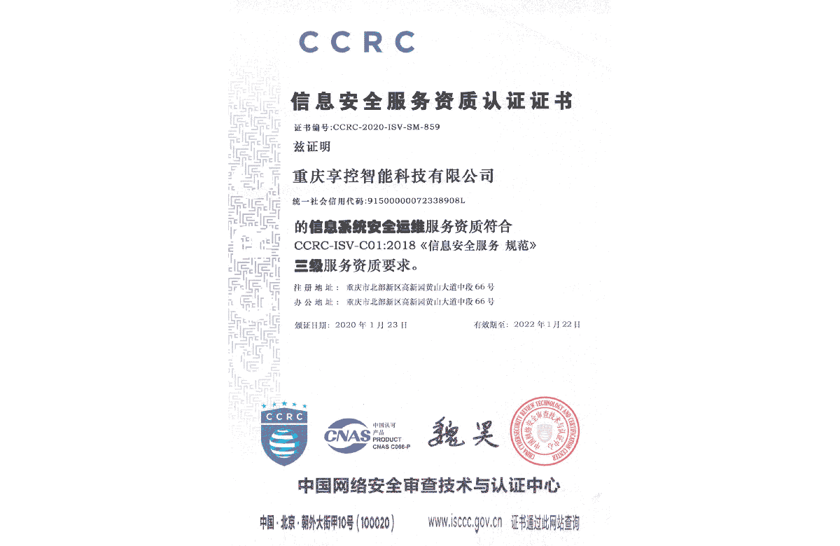 榮獲CCRC信息安全服務(wù)資質(zhì)